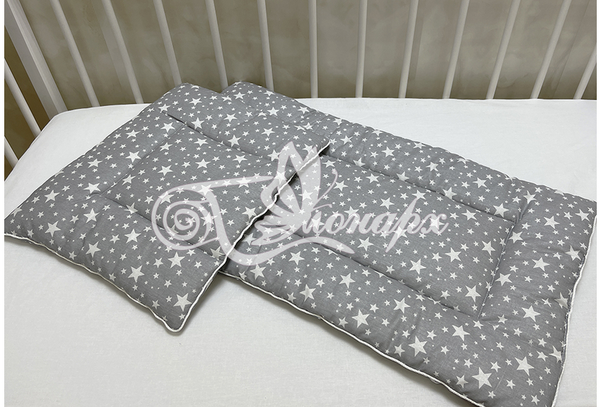Каждое изделие из набора простегано, матрасик и подушка обработаны декоративным кантом.