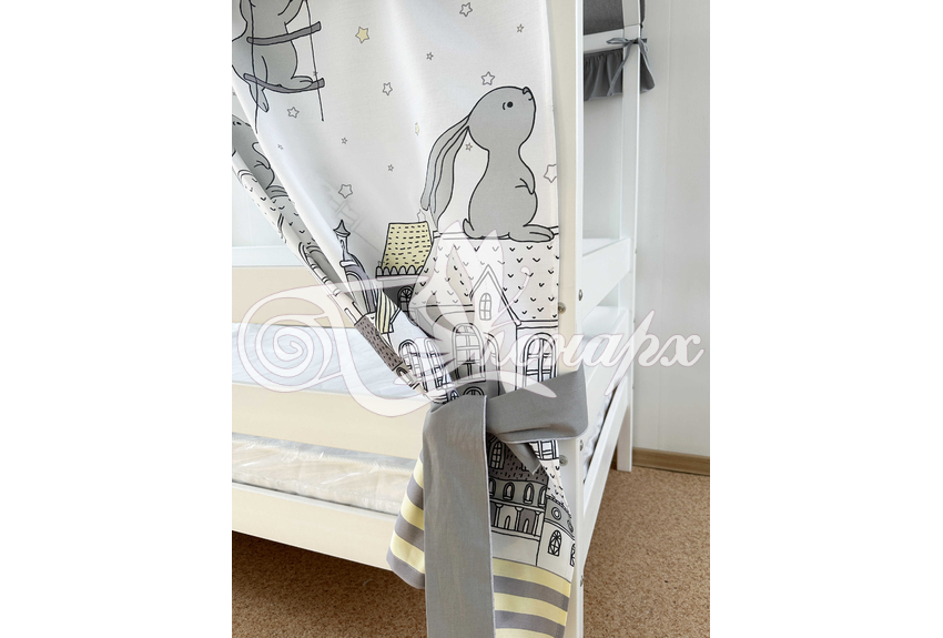 Крыша и шторы для кроватки домика ТД-34 купить в Грозном.Теги: комплект в кроватку домик, текстиль для домика, крыша для домика